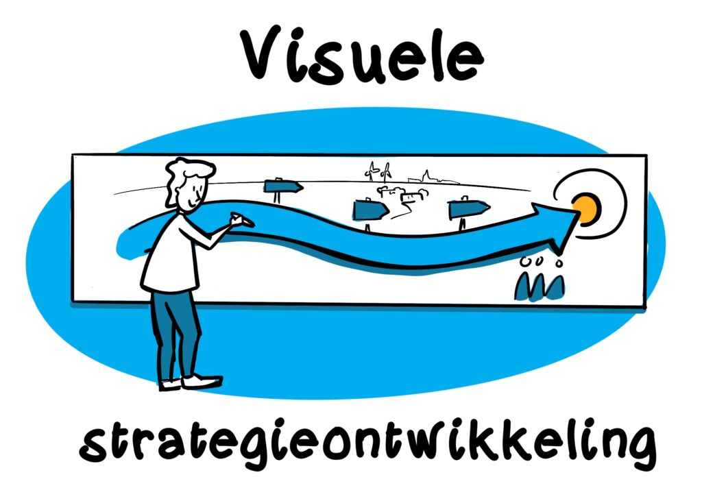 Visuele strategieontwikkeling is het proces waarbij je een organisatiestrategie niet beschrijft in tekst, maar uitbeeldt in beeld. Dat kan een grote wandtekening zijn, een praatplaat, een visuele roadmap of een getekend canvas.